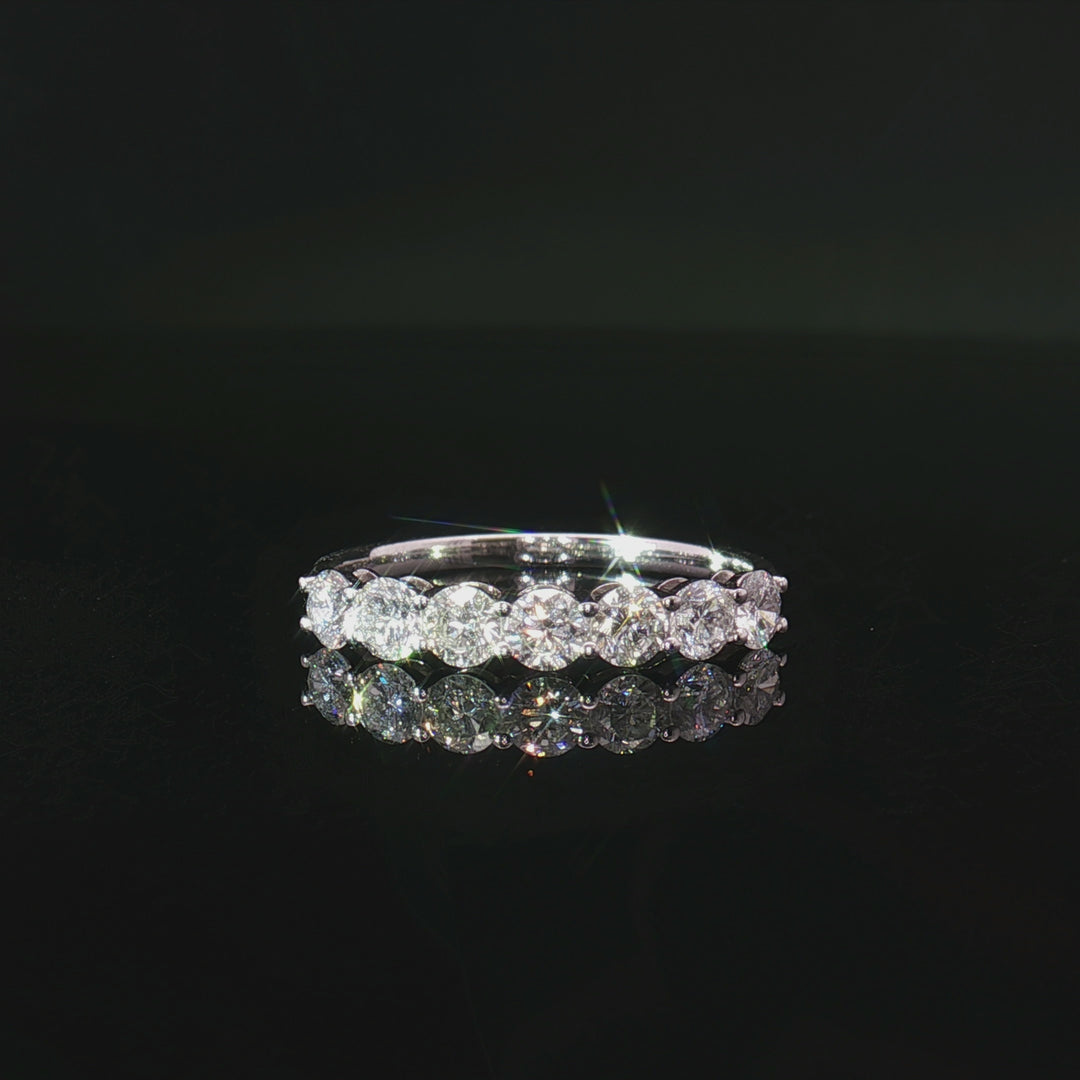 احتفل بالحب الأبدي مع خاتم الزواج LGR114 Seven Stone Half Eternity من Roselle Jewelry. يتميز هذا الخاتم الرائع بوزن إجمالي 0.75 قيراط من الألماس المتلألئ، موضوع بعناية في تصميم نصف أبدي كلاسيكي مع سبعة أحجار براقة. مثالي كخاتم زفاف أو هدية ذكرى مذهلة، يرمز إلى الالتزام الدائم والجمال الراقي.