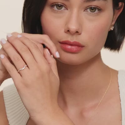 Compose a symphony of light with the LR106 Luxe Aria Contoured Wedding Band from Roselle Jewelry. Inspired by the soaring melodies of an operatic aria, this ring features a sweeping, graceful curve designed to harmonize perfectly with your engagement ring. As part of our "Luxe" collection, the Aria band is set with larger, hand-selected diamonds that offer superior brilliance and presence compared to standard contour bands. The substantial carat weight and refined prong setting create a ribbon of intense sparkle that frames your center stone with dramatic elegance. Whether you are looking to upgrade your bridal set or seeking a statement piece that sings with luxury, the Luxe Aria is the perfect choice. Handcrafted in 18K gold, it is a timeless ode to romance and refinement.
