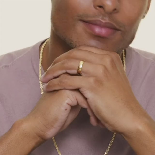 探索 Roselle Jewelry NM26 男士結婚戒指的完美尺寸細節。這款戒指寬度精確為 5.5mm,介於標準的 6mm 與較窄的 5mm 戒指之間。對於覺得標準寬度稍顯厚重,但又希望比窄戒指更有存在感的挑剔男士來說,是理想的選擇。5.5mm 的輪廓帶來「量身訂做」的感覺,提供充足的黃金重量,同時不影響靈活度。採用我們標誌性的「Comfort Fit」內部設計,讓日常佩戴輕鬆自在。手工製作,採用 18K 金。